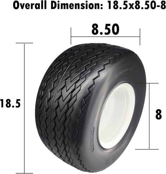 18x8 50 8 Lawn Tire with Rim, Flat Free 18x8.50-8 Tire and Wheel with 4 Lugs