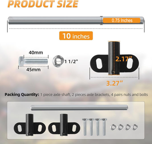 3/4 Axle Kit, 10" x .75" Wheelbarrow Axle and 2.1” x 3.3” Brackets
