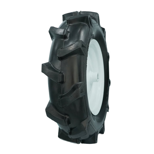 4.80/4.00-8 Tiller Tire with 3/4 Bore and Keyway, 3 1/8” Center Hub Flat Free Tire and Wheel with Lug Tread for Rototiller