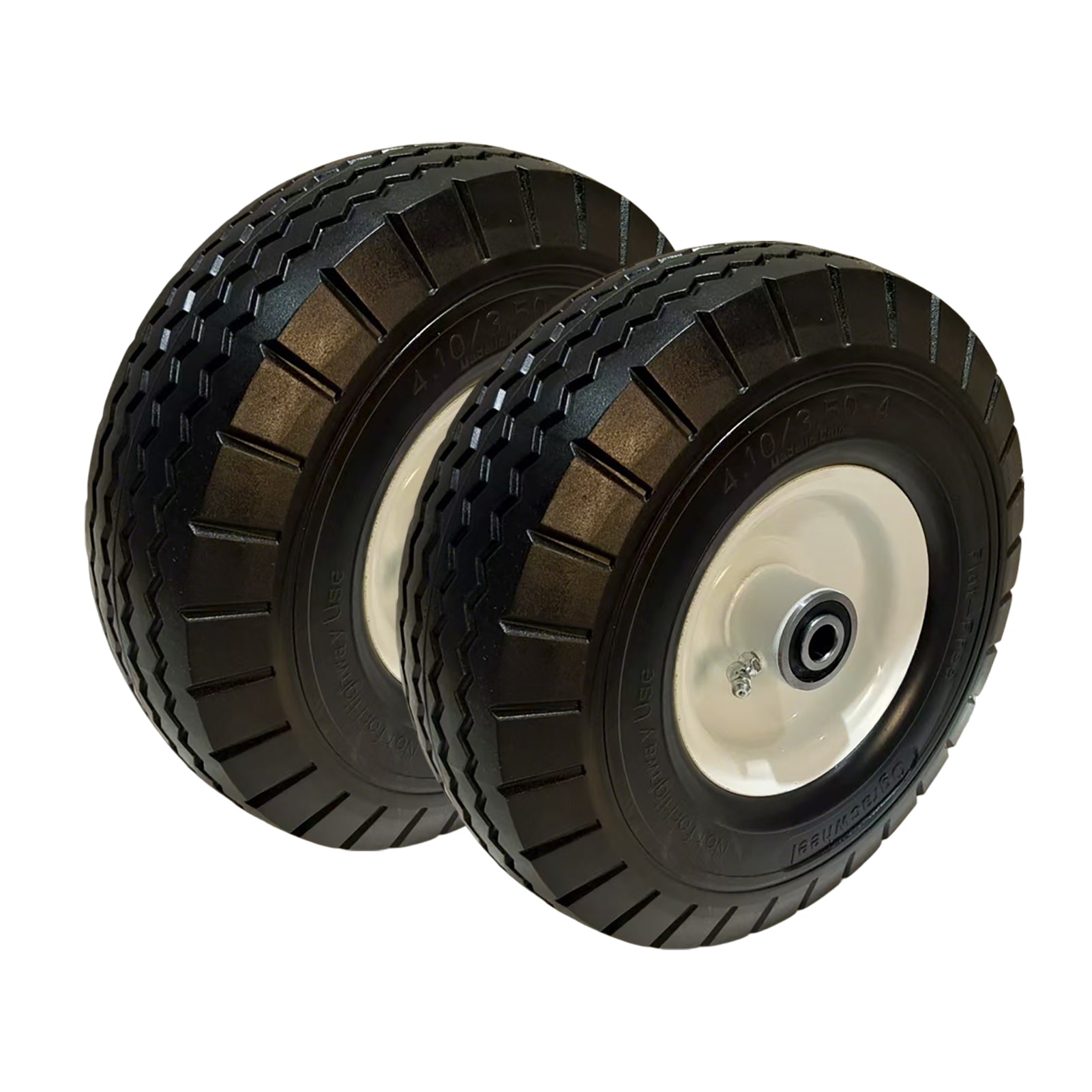 【No Flat Anymore】Made of high-quality 4.10/3.50-4 flat free tire will never puncture or leak, and same as pneumatic 1/2 bore wheel and tire, featured performance bounce, feel, cushioning, won't be affected by UV rays when left exposed to the sun.