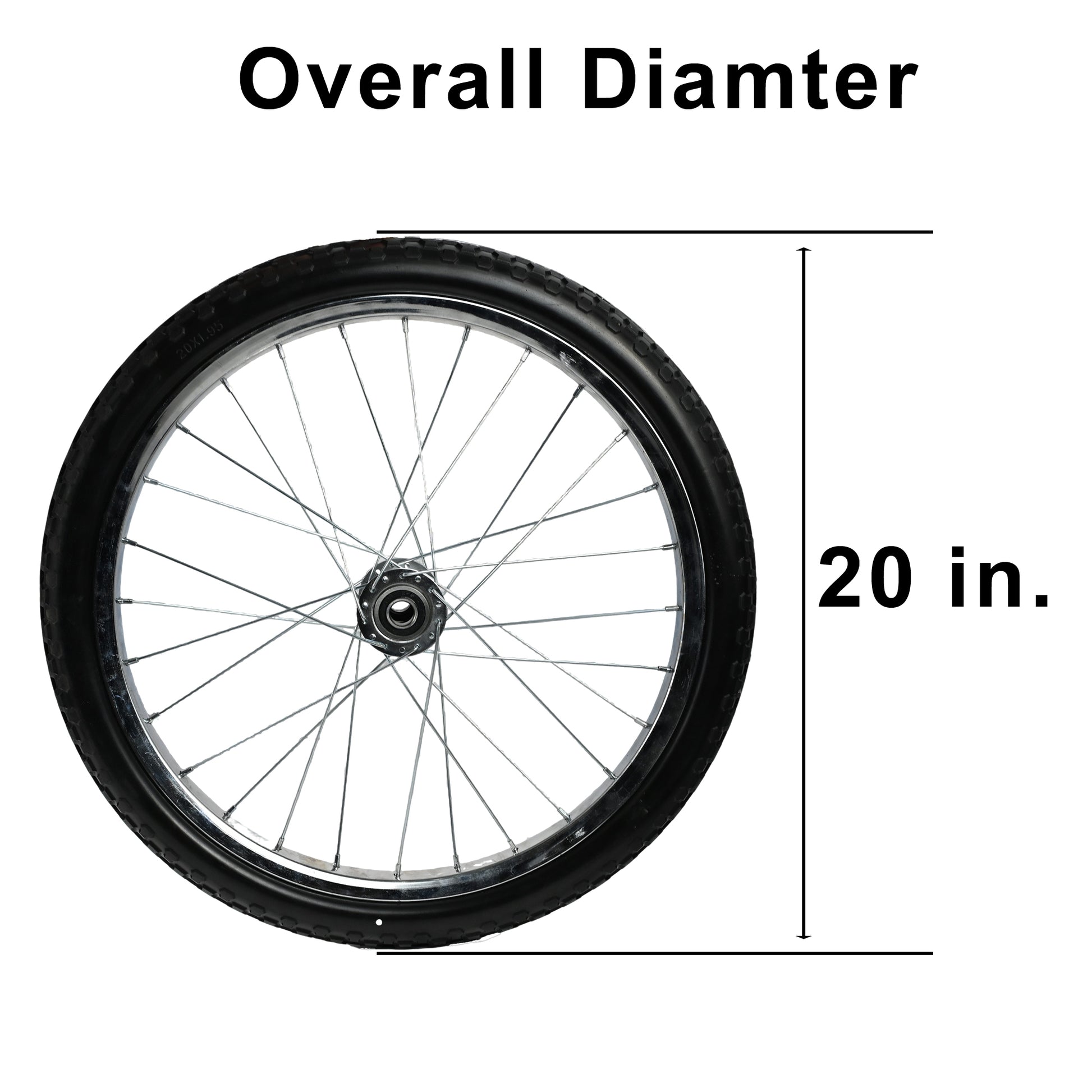 【20" Flat Free Garden Cart Wheel】The cart wheel for garden comes with 5/8 bearings and 3” center hub, ideal replacement for heavy-duty carts, garden wagons, and pony wagons. IMPORTANT NOTE: Check your existing tire sidewall for tire, hub, and bearing size to ensure that this wheel is a proper fit.