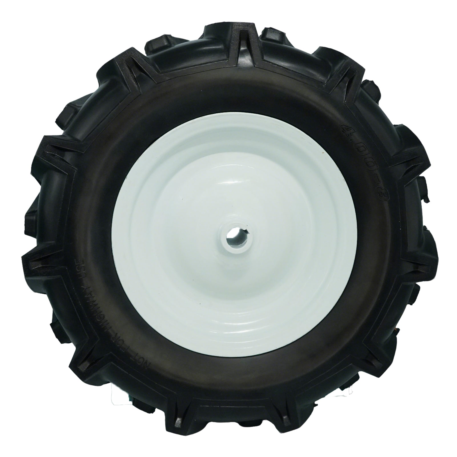 - 【Lug Tread Pattern for Mud Terrain】Aggressive lug tread provides excellent traction in muddy, wet, or uneven ground—the 4.80/4.00-8 tire and wheel for rototiller is ideal for use in gardens, fields, and rough off-road surfaces.