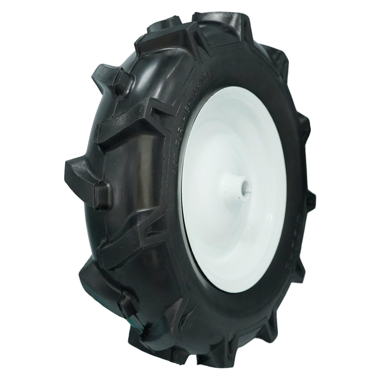 - 【Solid Foamed Tire and Rim】Maintenance-free flat free design—filled with high-density polyurethane foam. The 4.80-8 tiller wheels 3/4 axle featured with no air, no leaks, no downtime. Pre-mounted on a durable steel rim for added convenience.