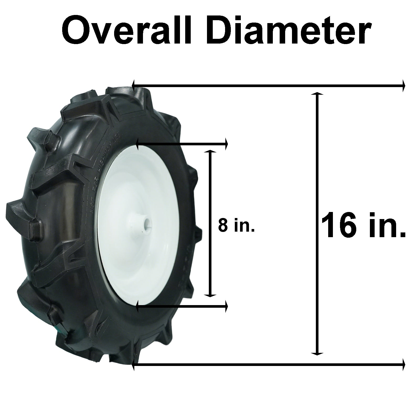 - 【4.80/4.00-8 Tiller Wheel Specification】Compatible with troy bilt tiller tires 4.80-8. Size: 4.80/4.00-8. Non-pneumatic. Overall diameter: approx. 15.5”. Fits 3/4" keyed shaft. Load rated for typical garden and farming use.